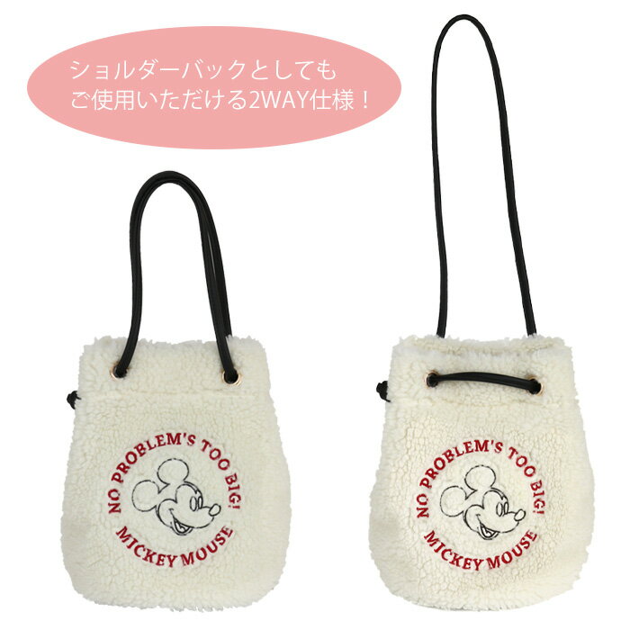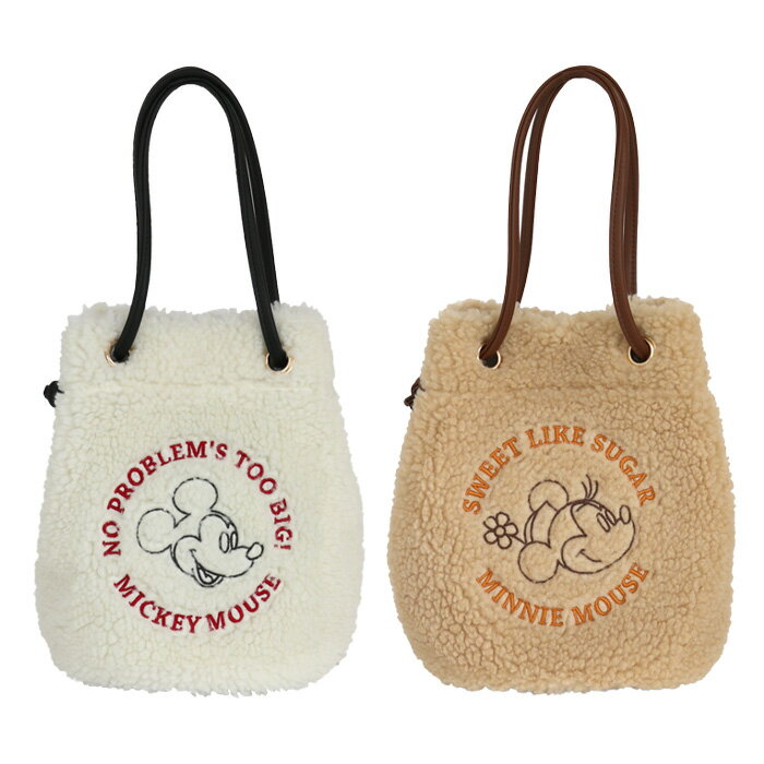 送料無料 ディズニー ラインアート ボア ミニ バッグ ショルダー 2WAY かばん 鞄 カバン 肩掛け ショルダーバッグ ミニバッグ ポケット 刺繍 刺しゅう 立体感 もこもこ 合成皮革 合皮 レディース かわいい グッズ ベージュ アイボリー イラスト ミッキー ミニー s-su-7g039